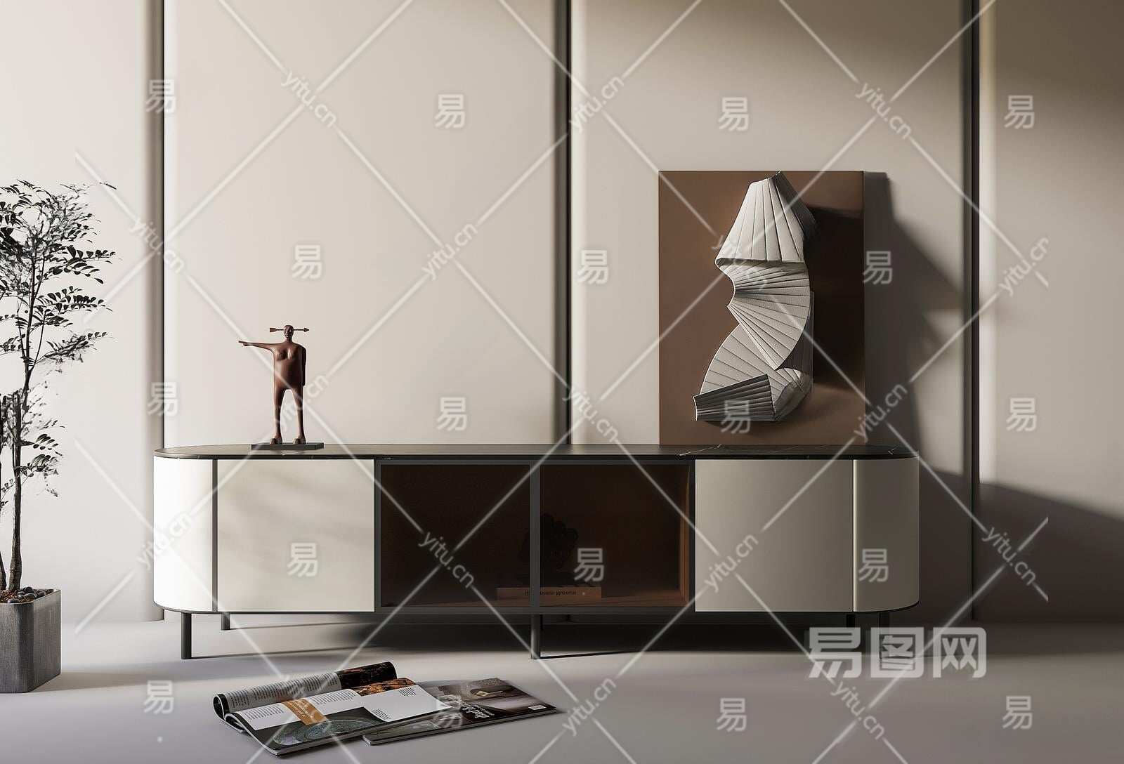现代电视柜3D模型下载