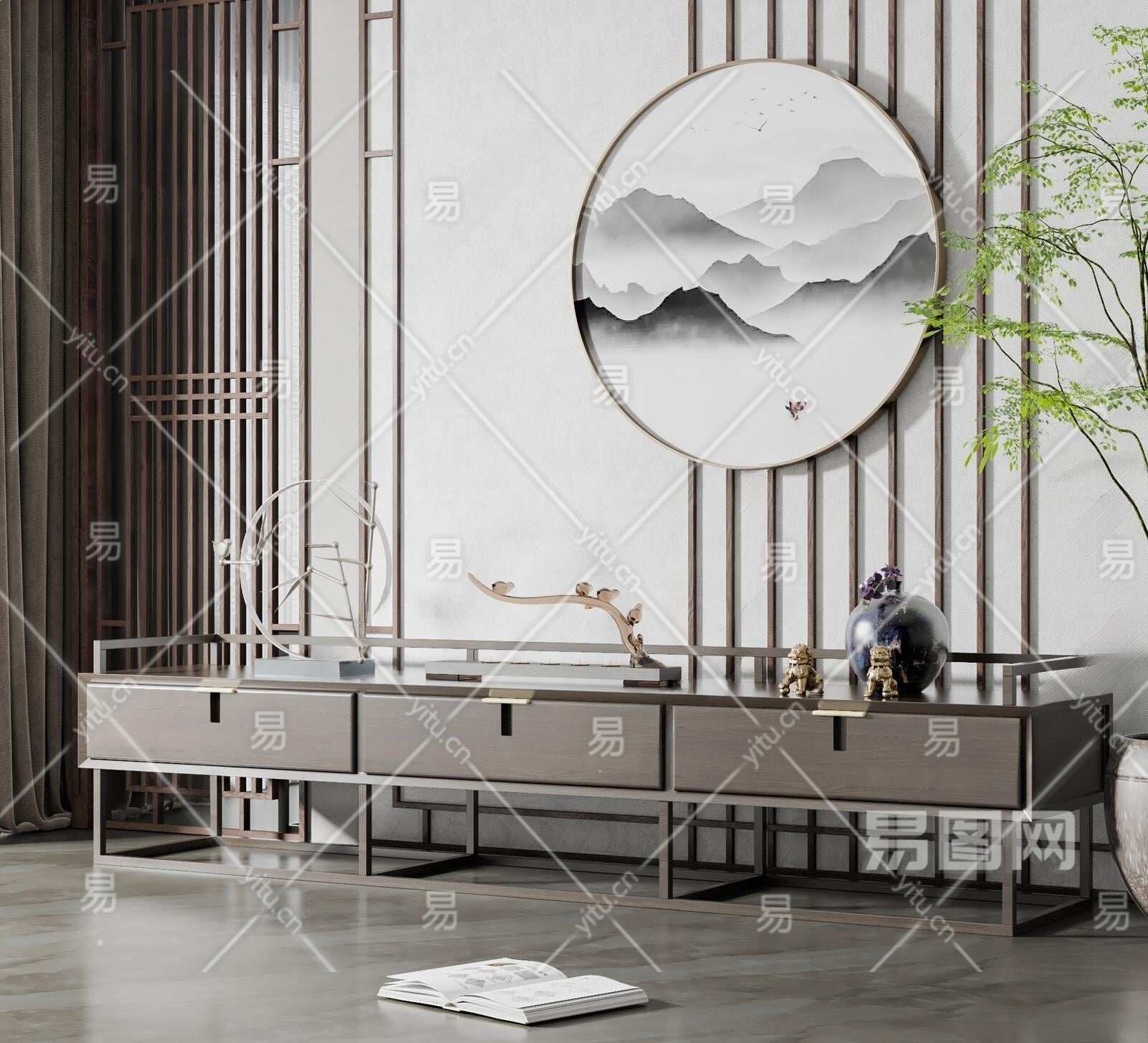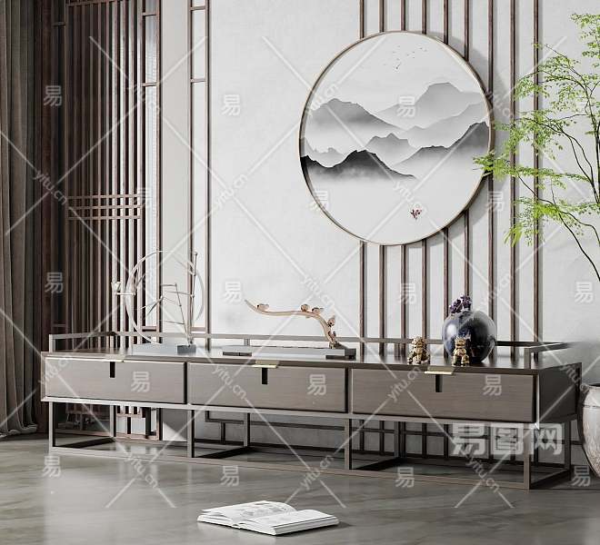 新中式电视柜3D模型下载
