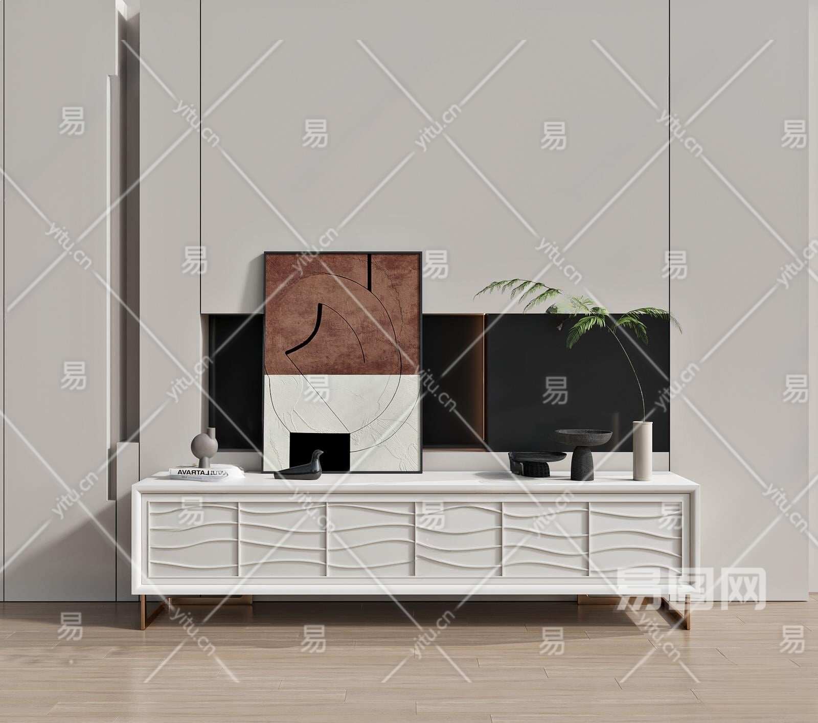 现代电视柜3D模型下载