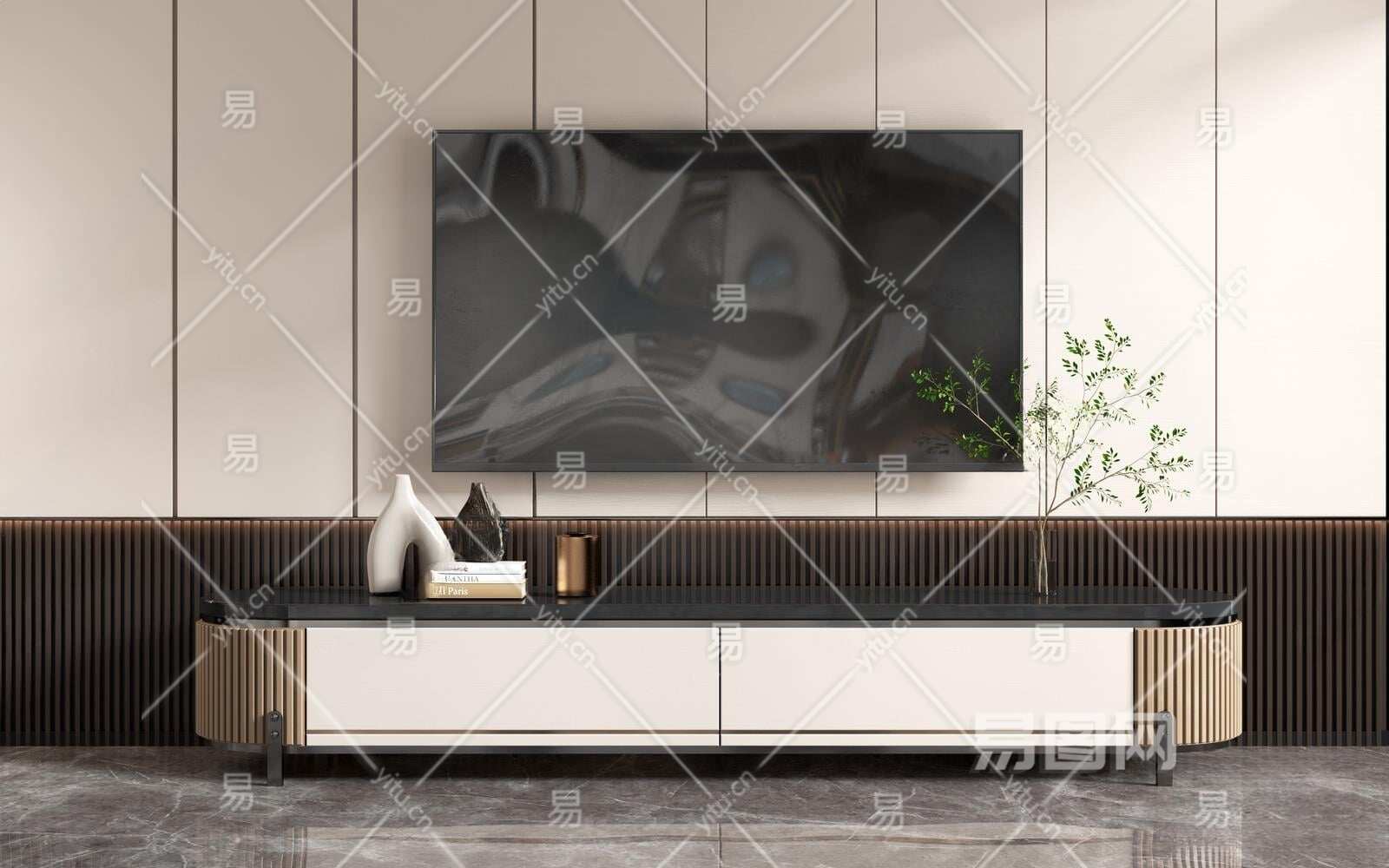 现代电视柜3D模型下载