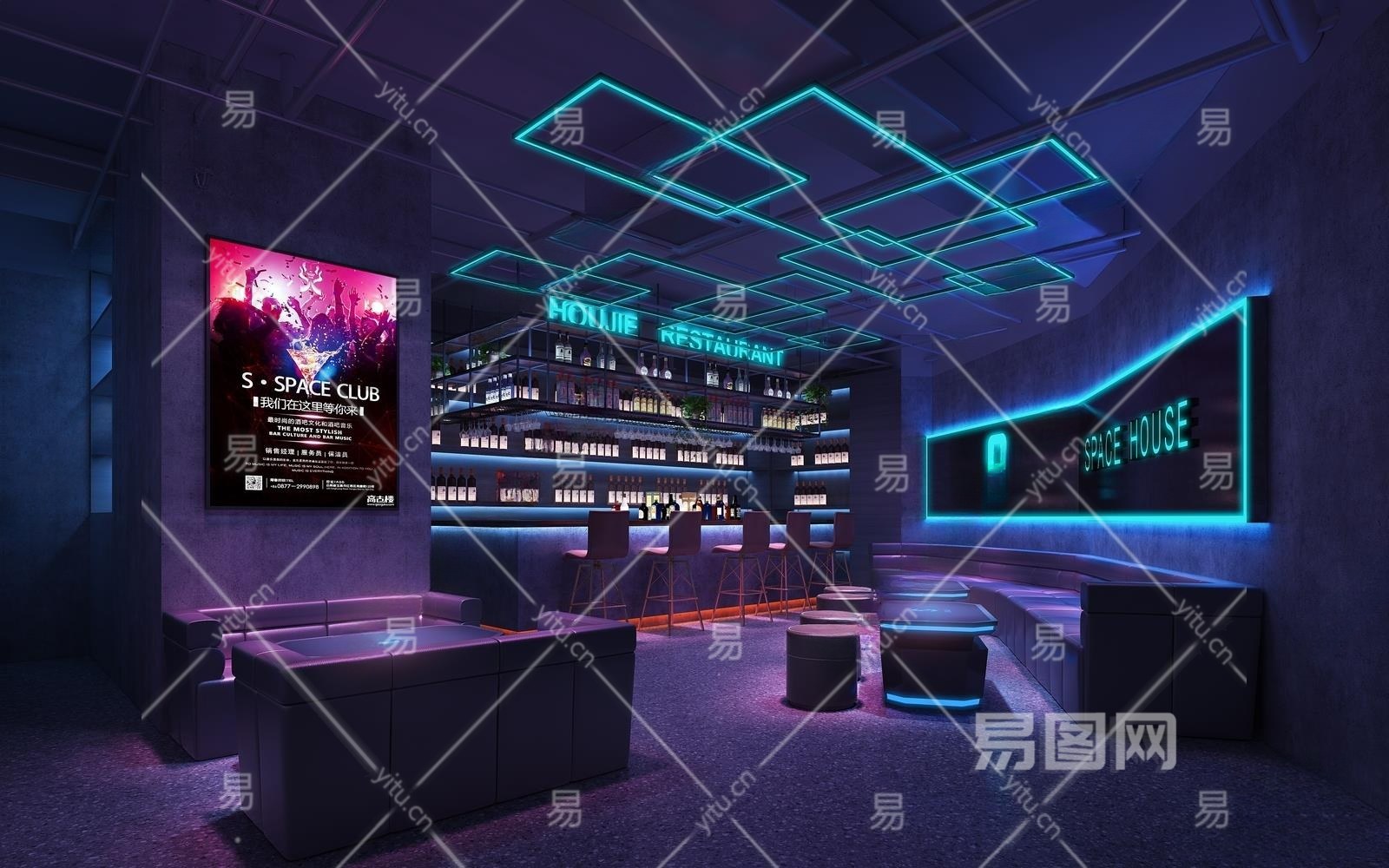 现代酒吧水吧区3D模型下载