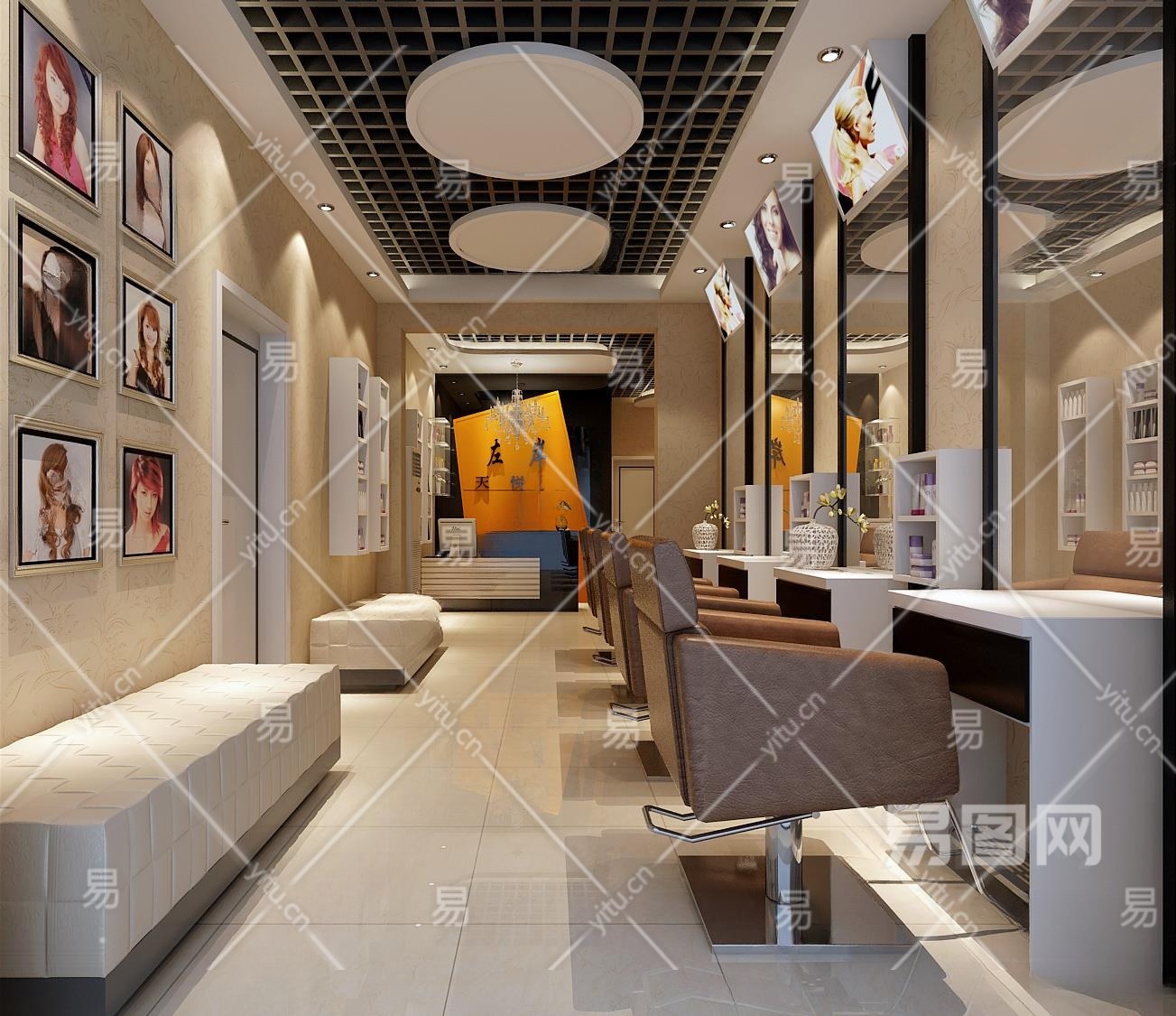 现代美发店3D模型下载