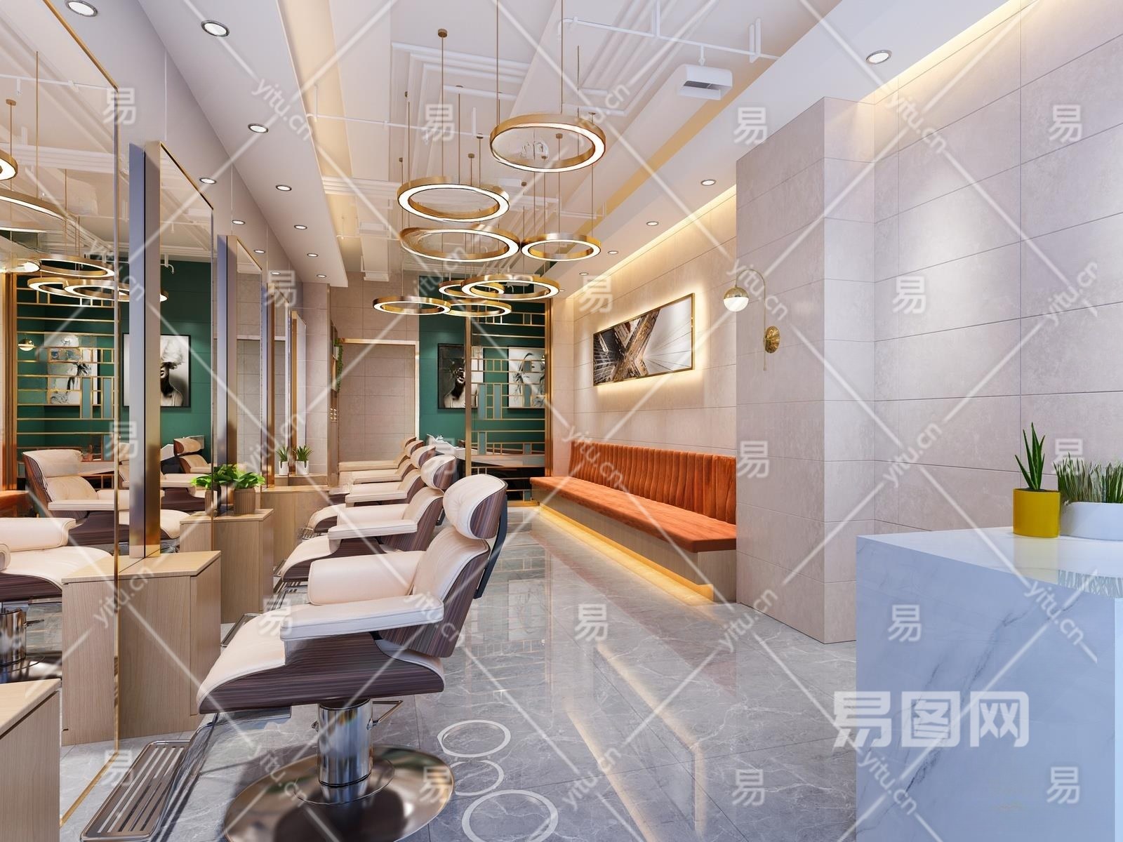 现代简约理发店3D模型下载