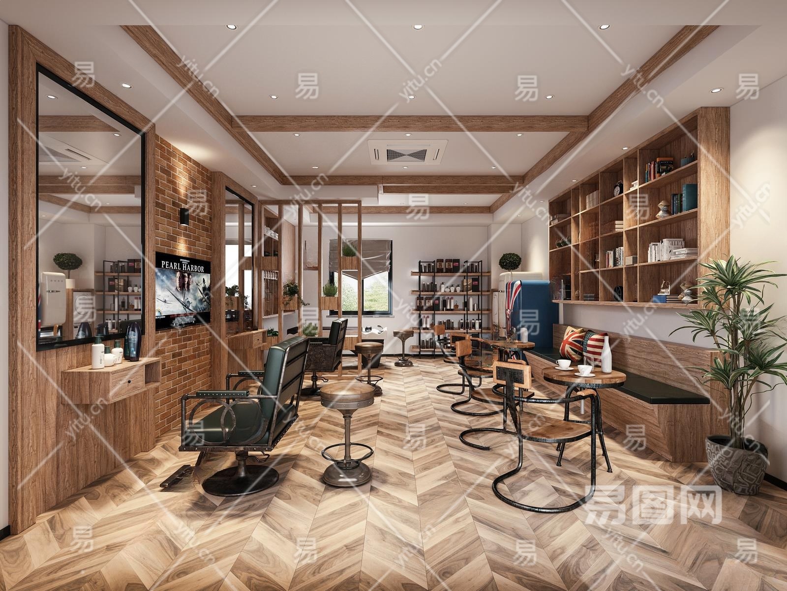 工业风理发店3D模型下载