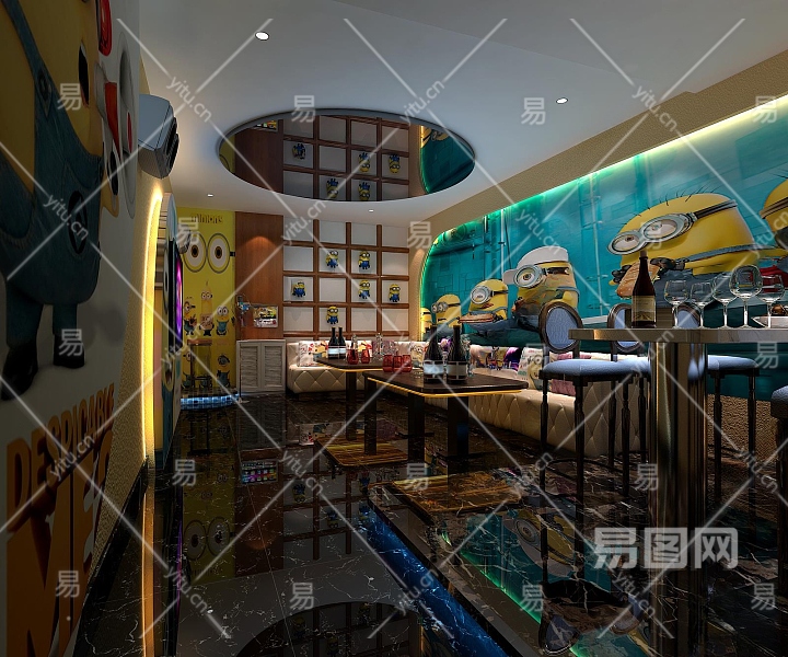 现代小黄人主题KTV包厢3D模型下载