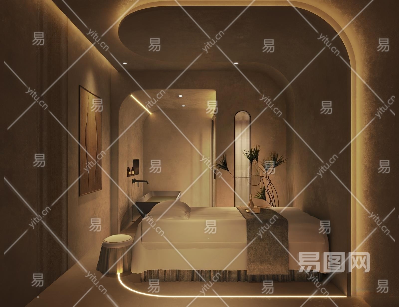 侘寂风美容包间3D模型下载