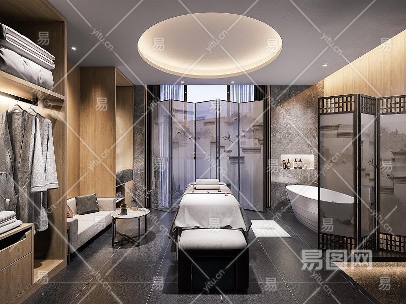 新中式美容院包间3D模型下载