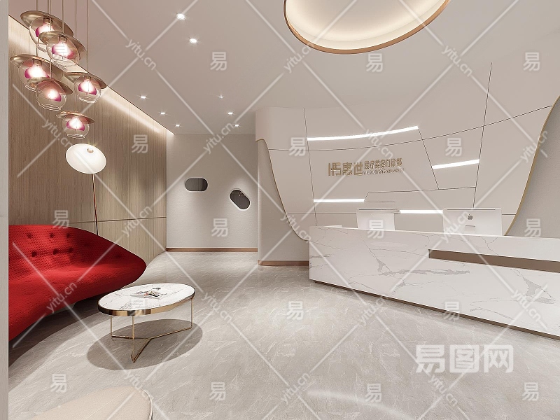 现代美容院大厅3D模型下载