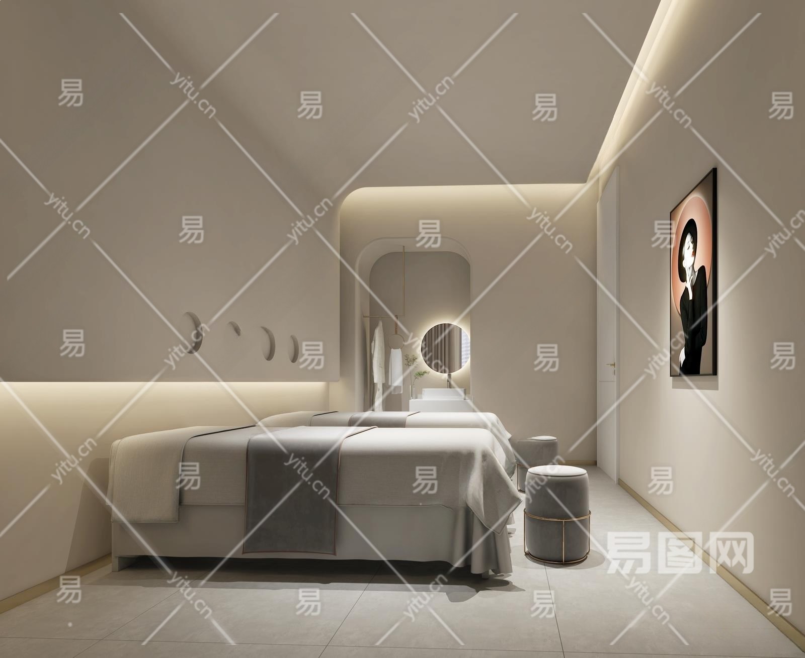 侘寂风美容院包间3D模型下载