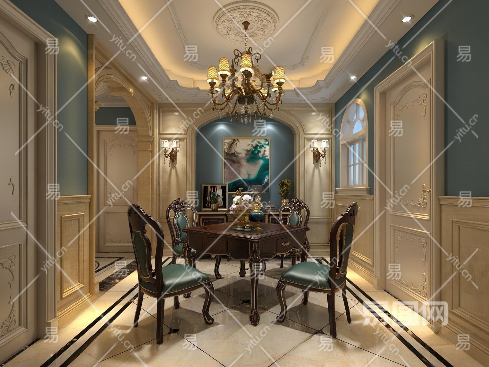 欧式古典麻将桌3D模型下载
