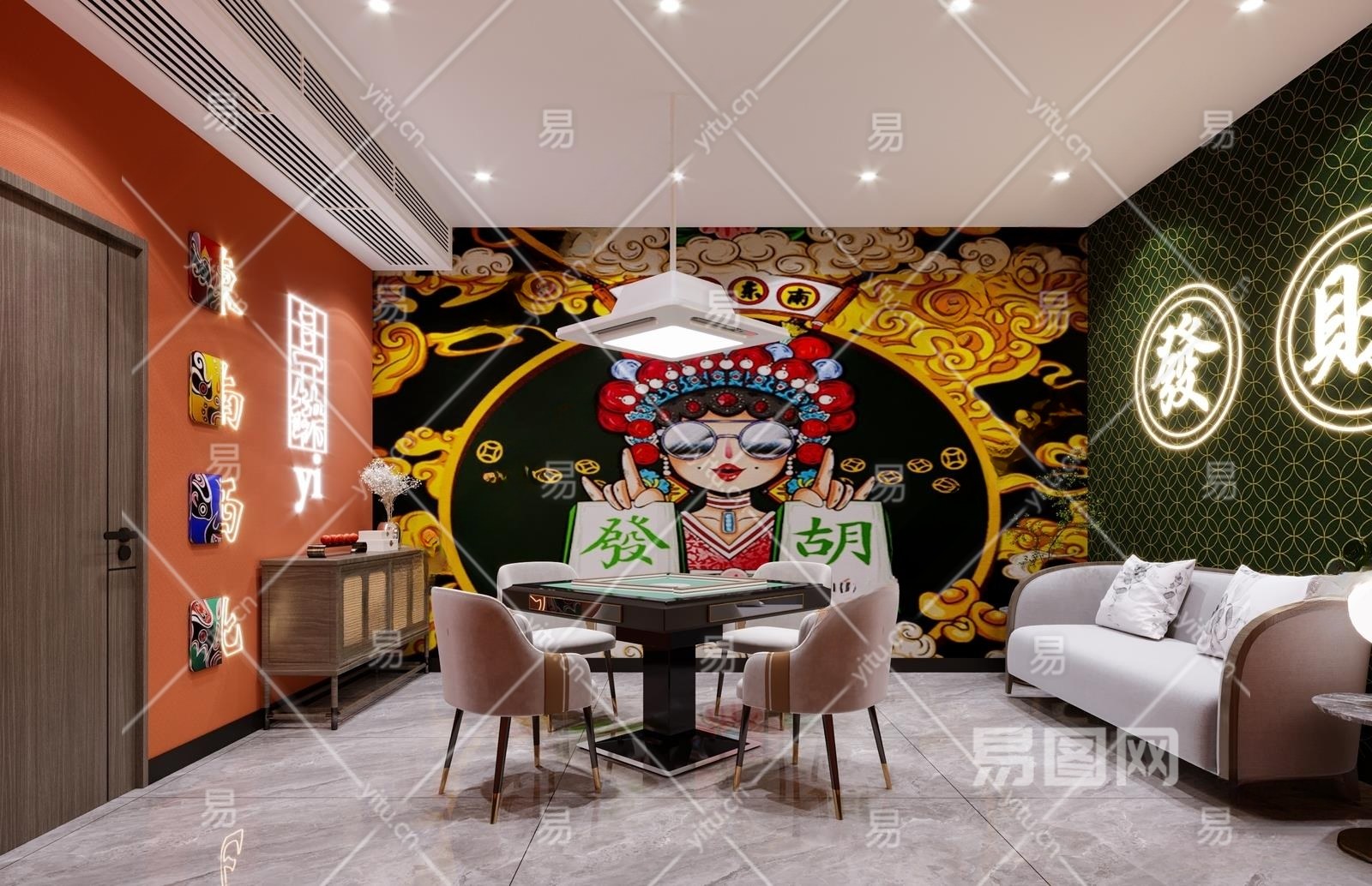 新中式国潮棋牌室3D模型下载
