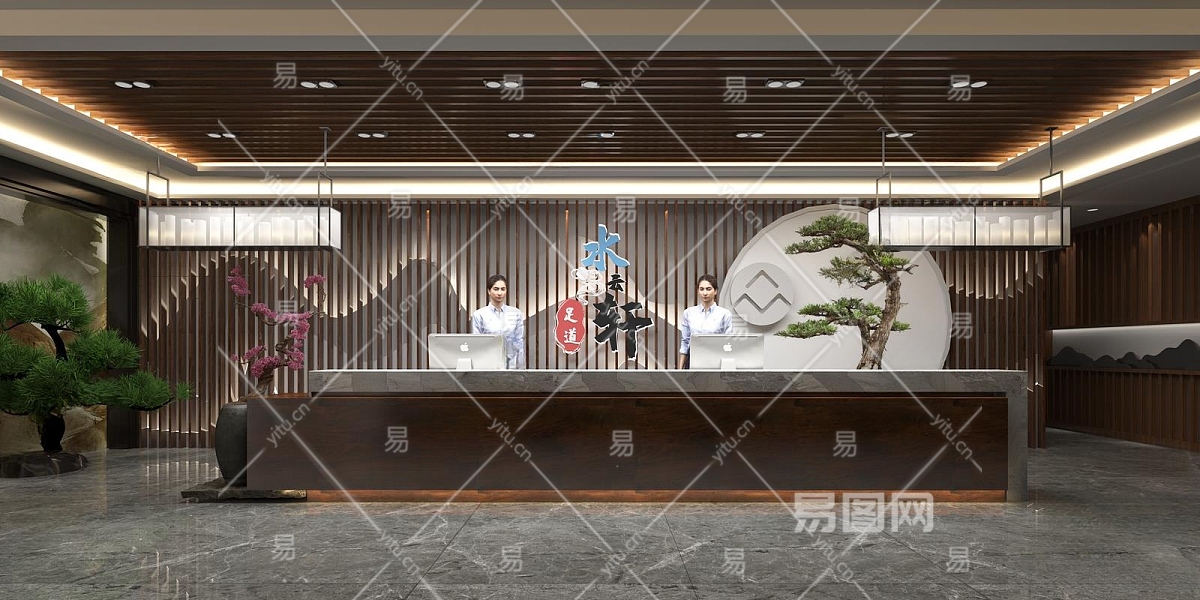 新中式足浴会所前台3D模型下载