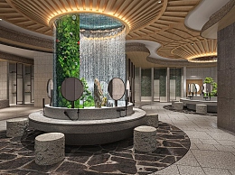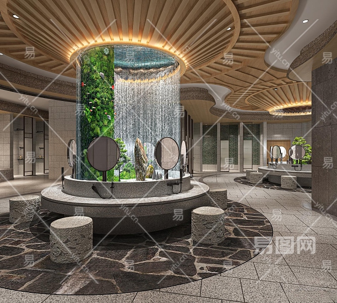 新中式洗浴中心大厅3D模型下载