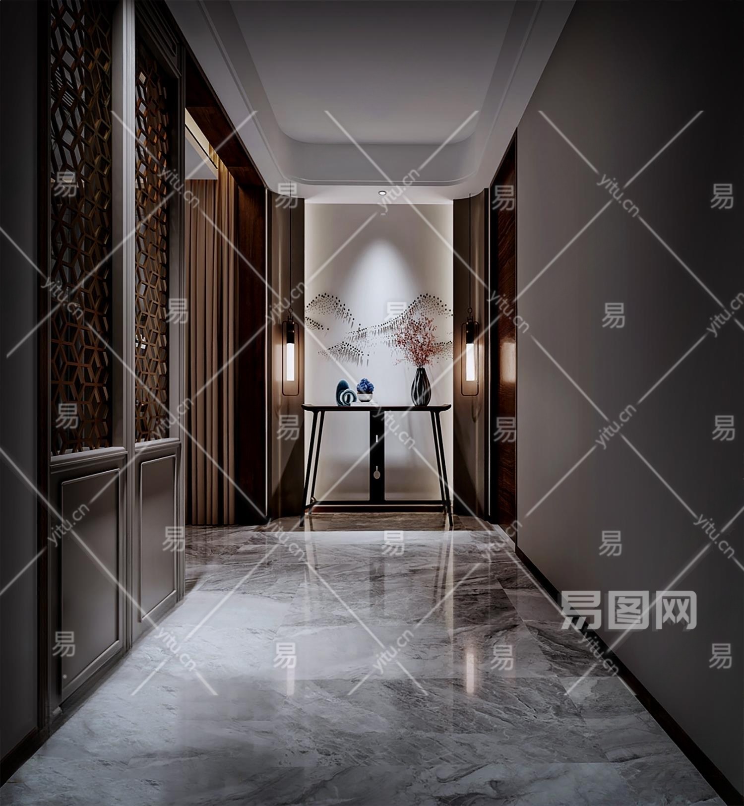 新中式足浴SPA会所过道3D模型下载