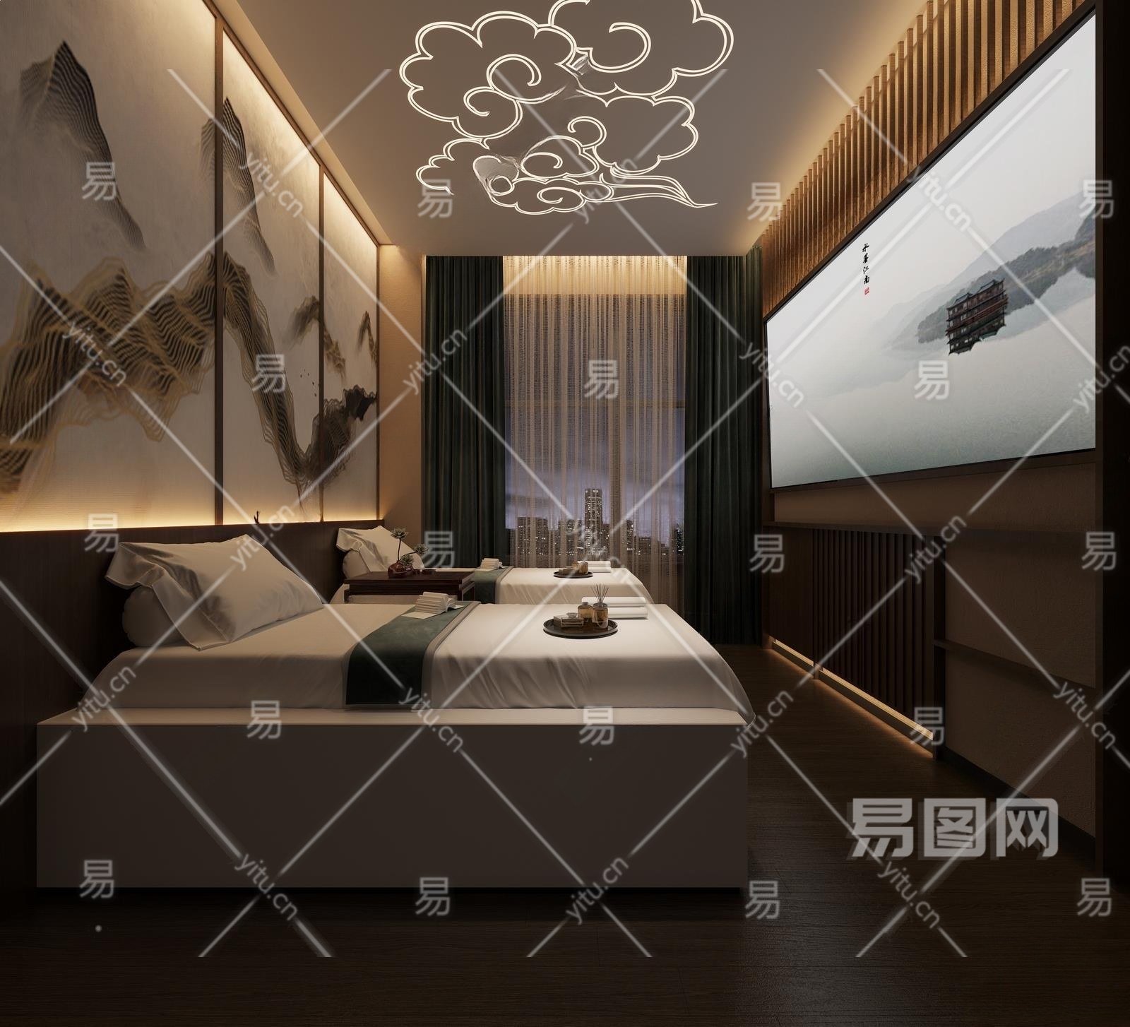 新中式洗浴中心包间3D模型下载