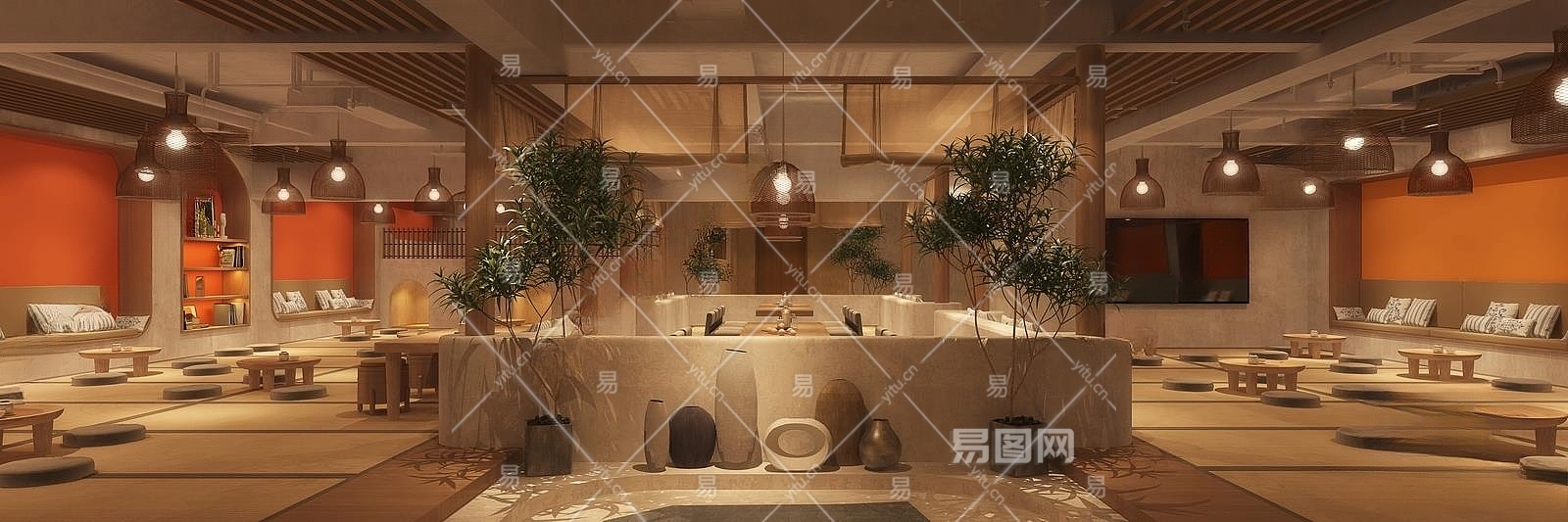 侘寂洗浴中心休息大厅3D模型下载
