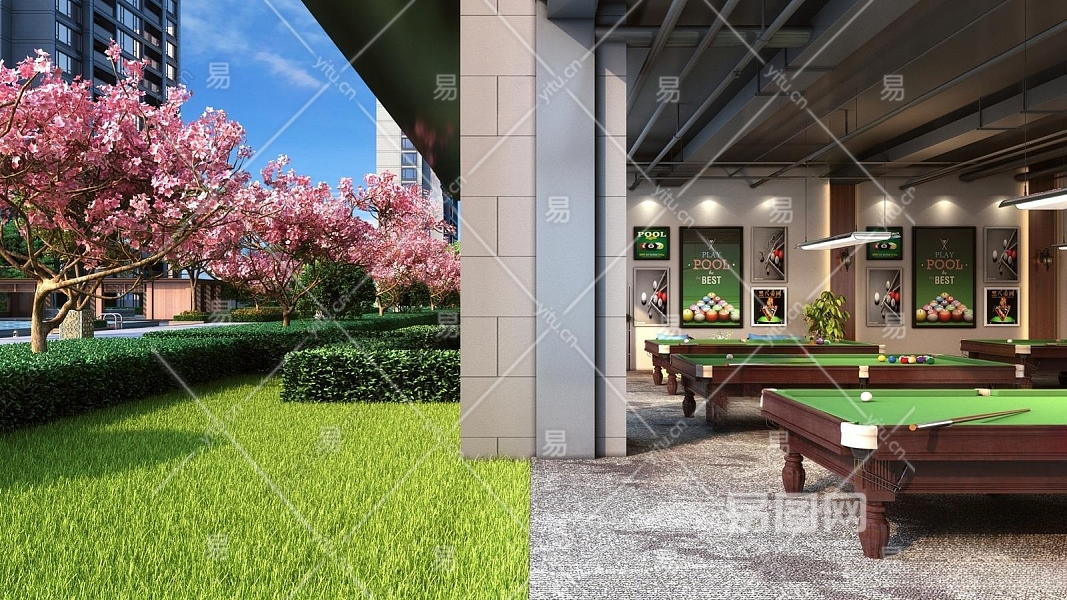 现代架空层台球室3D模型下载