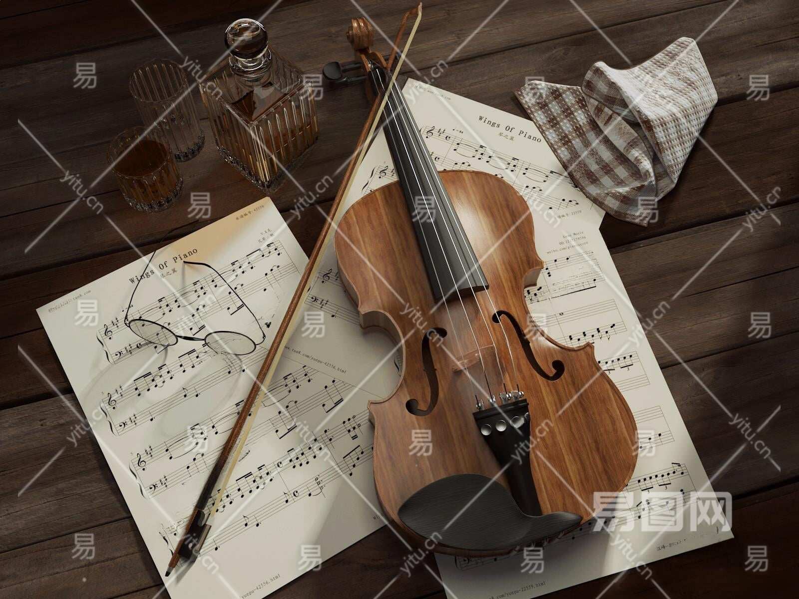 现代小提琴3D模型下载