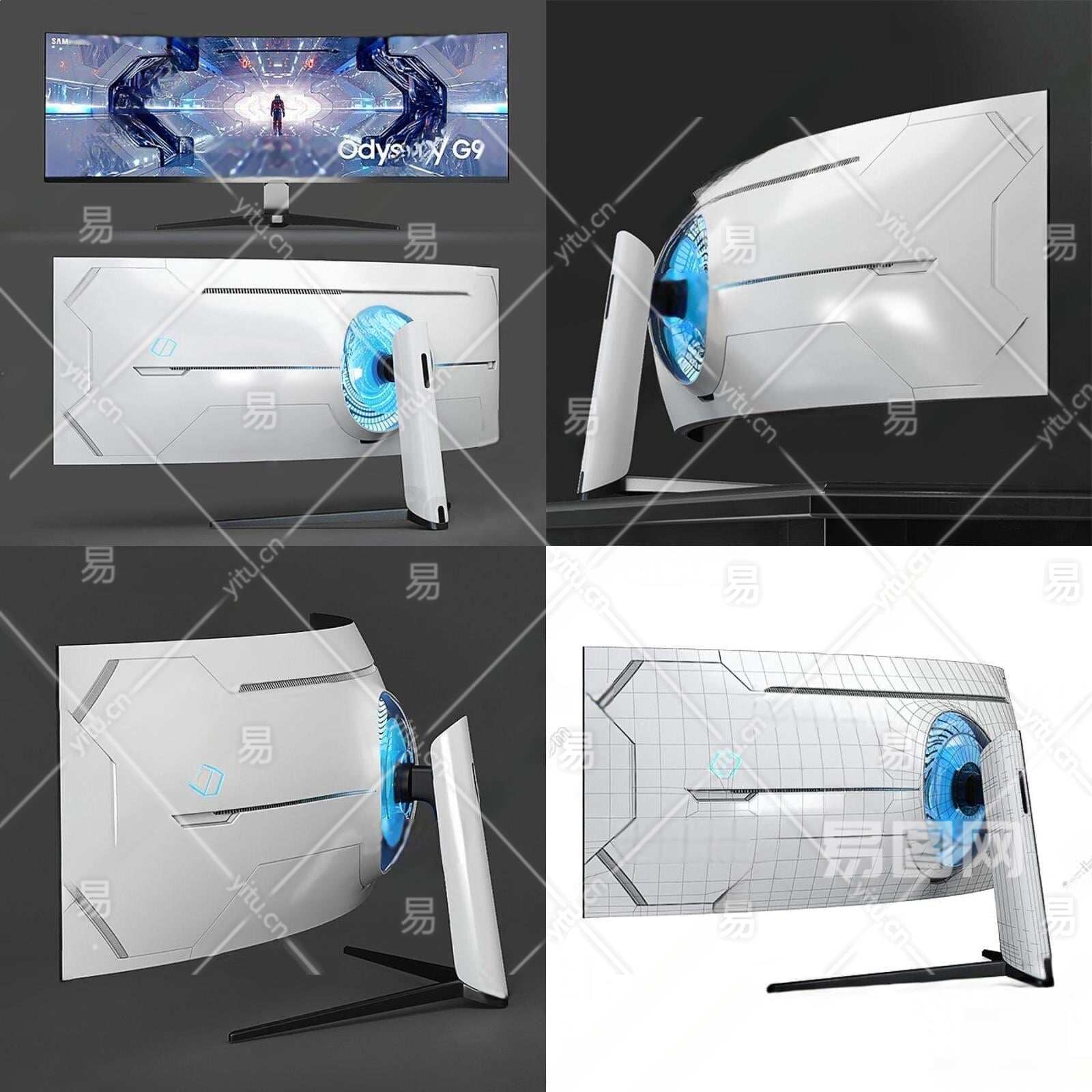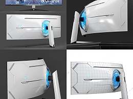 三星超宽曲面屏电脑显示器3D模型下载