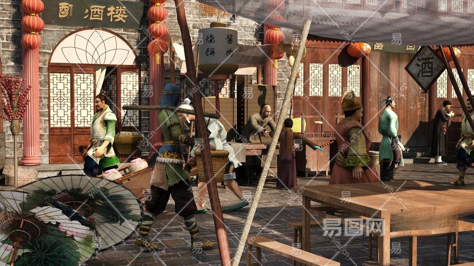 中式商业街3D模型下载