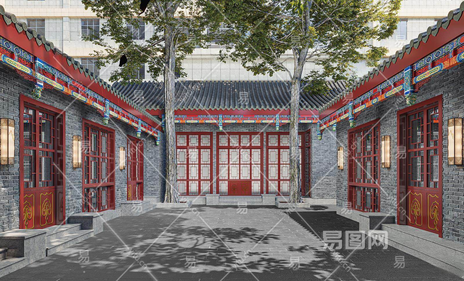 新中式庭院景观3D模型下载