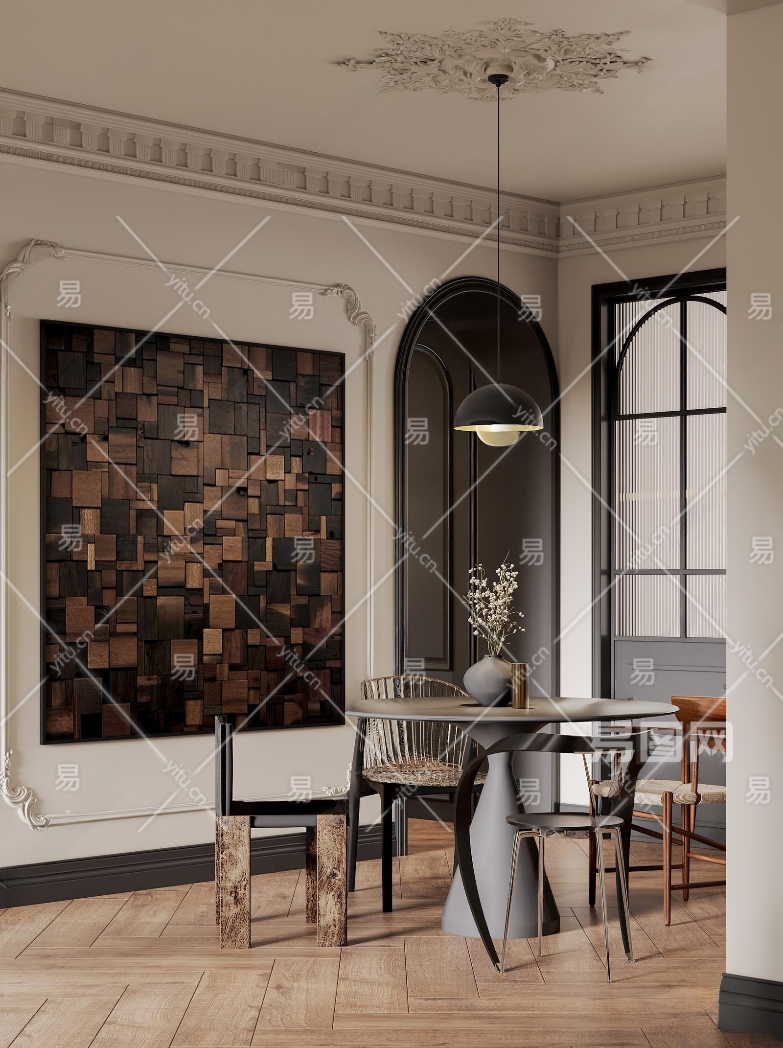 法式复古家居餐厅3D模型下载