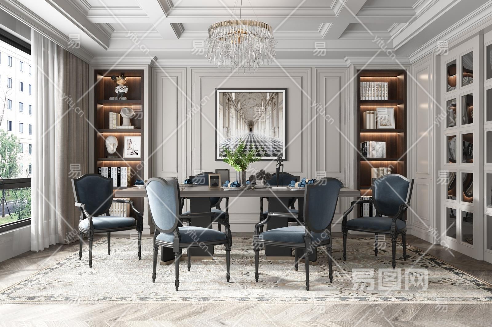 美式家居餐厅3D模型下载