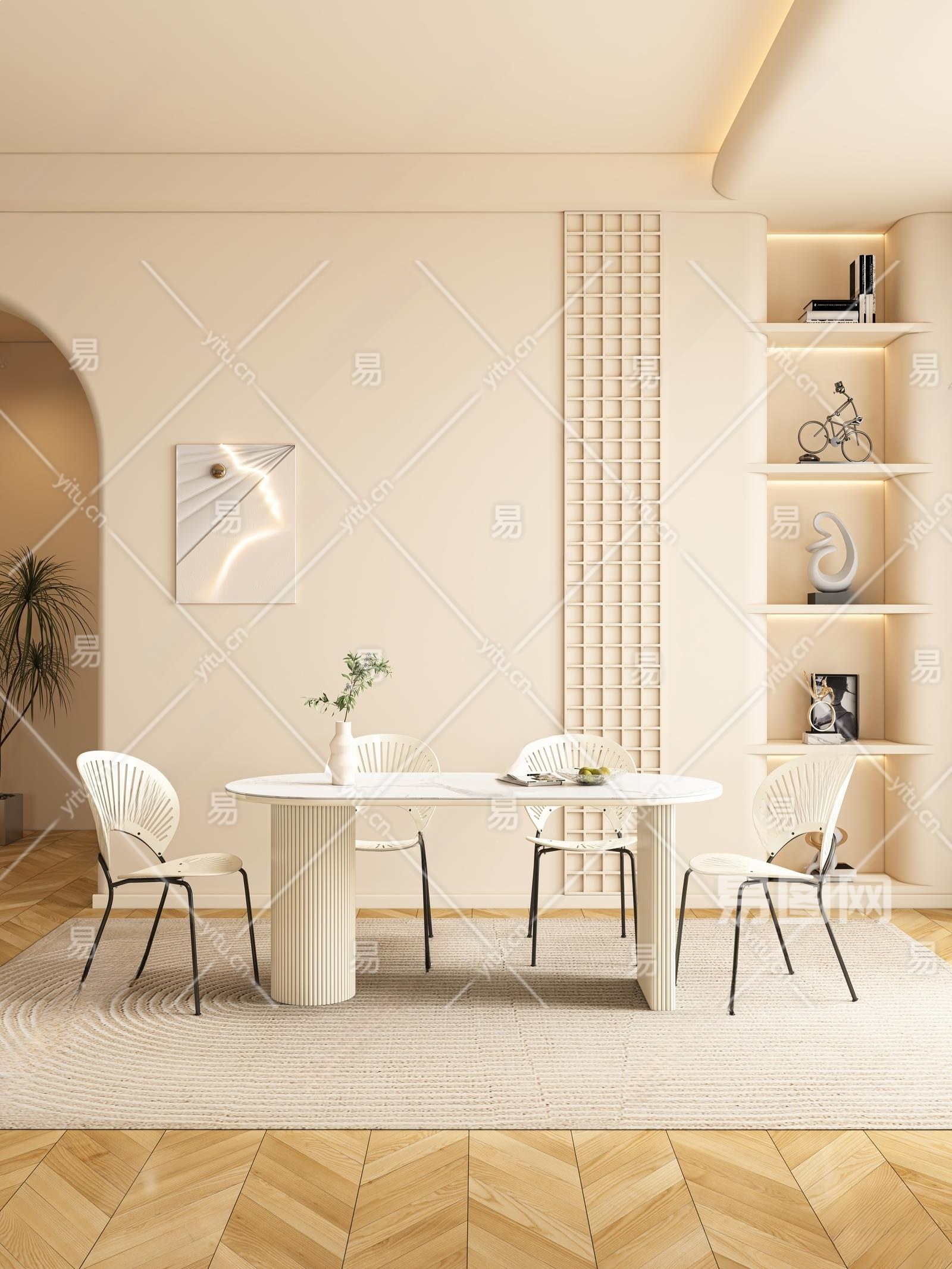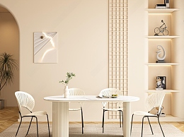现代奶油风餐厅3D模型下载