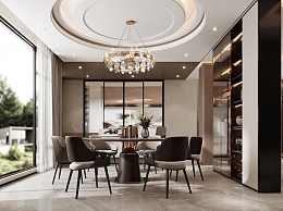 现代轻奢餐厅3D模型下载
