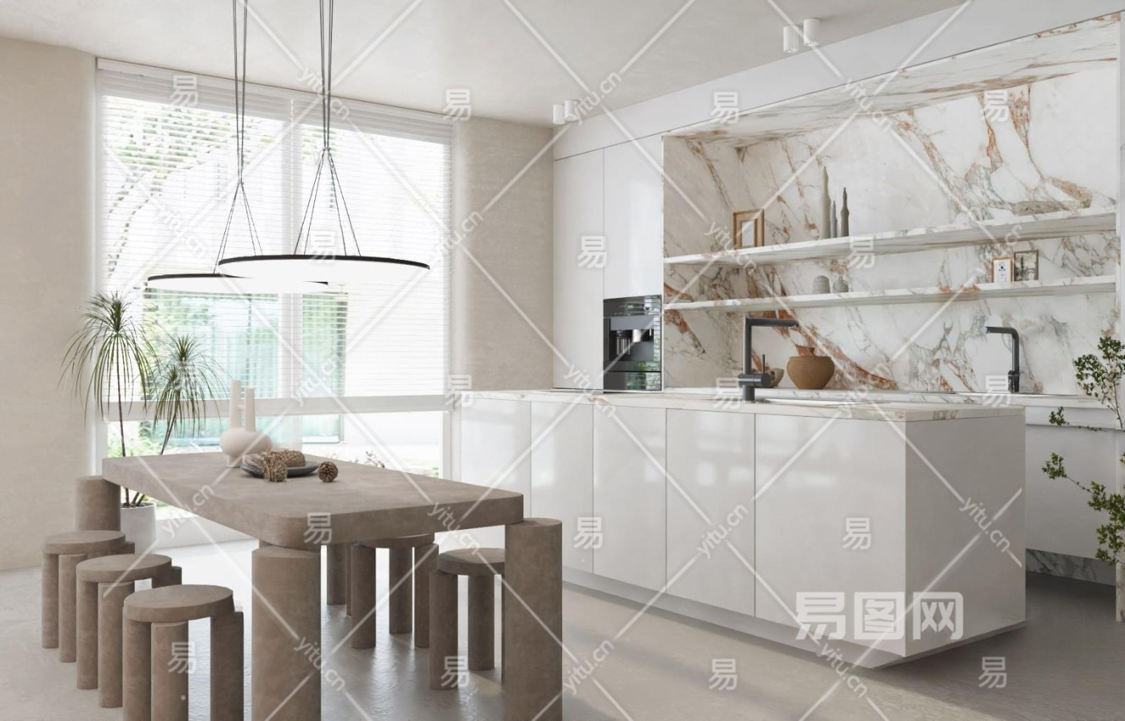 现代家居餐厅3D模型下载