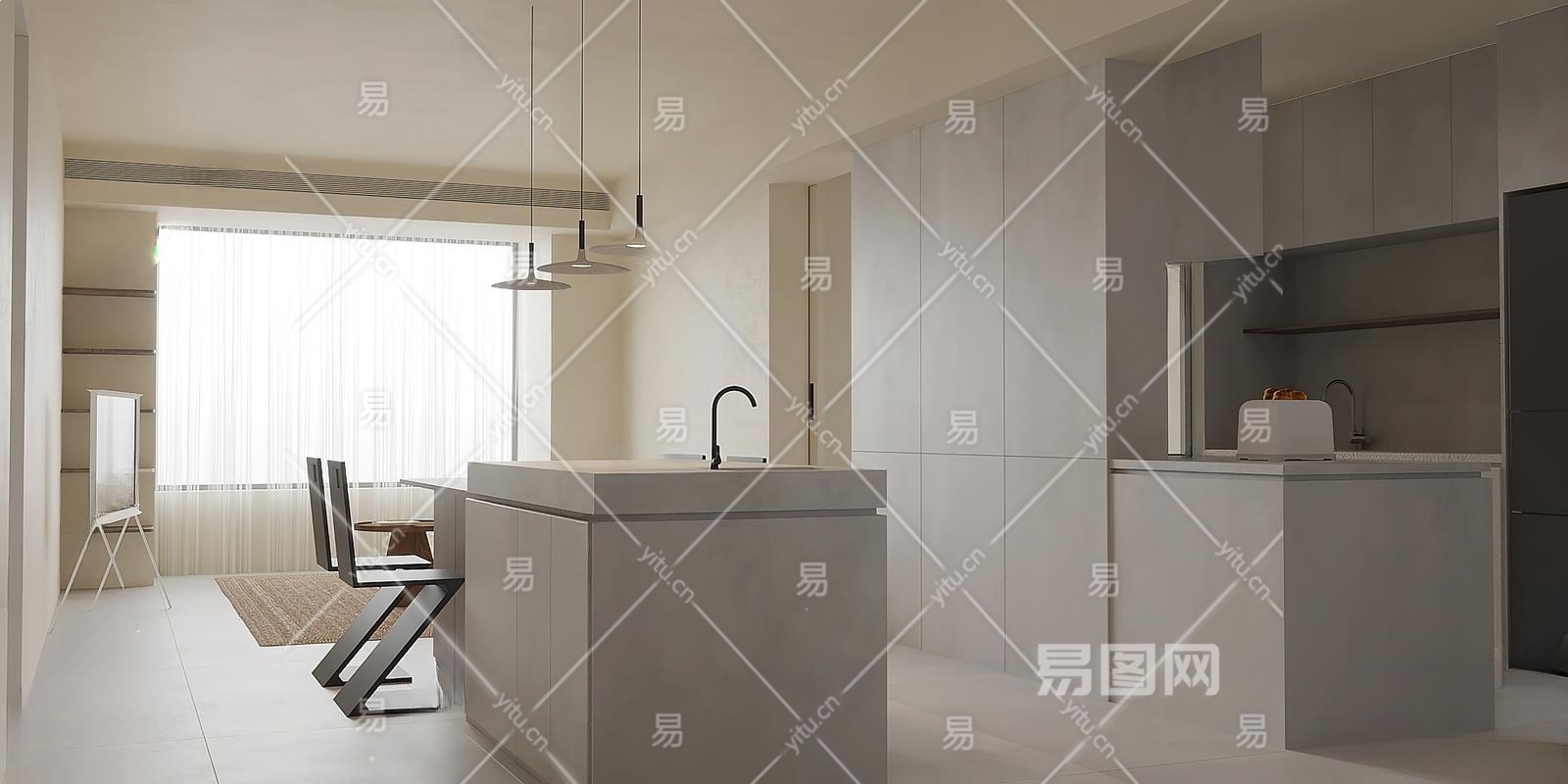 现代餐厅3D模型下载