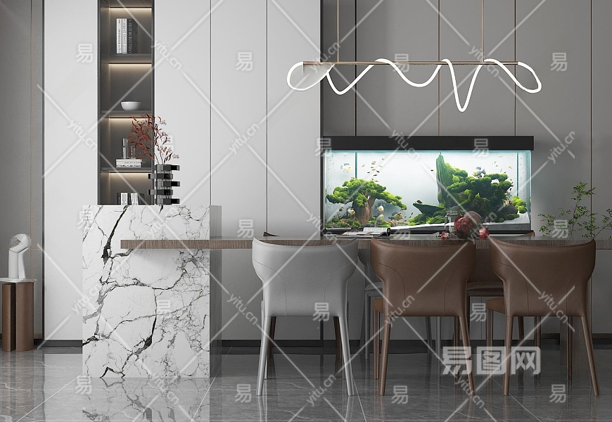 现代家居餐厅3D模型下载