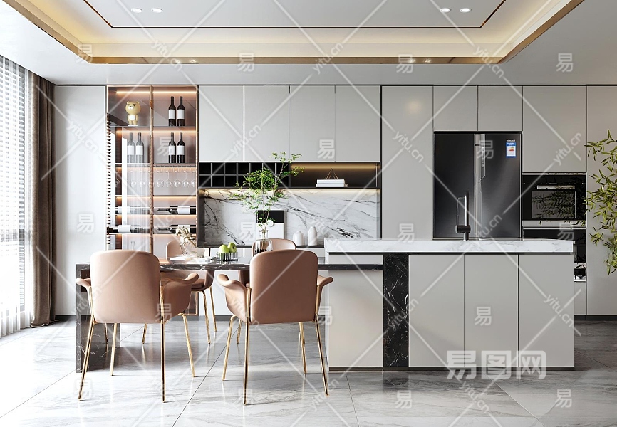 现代家居餐厅3D模型下载