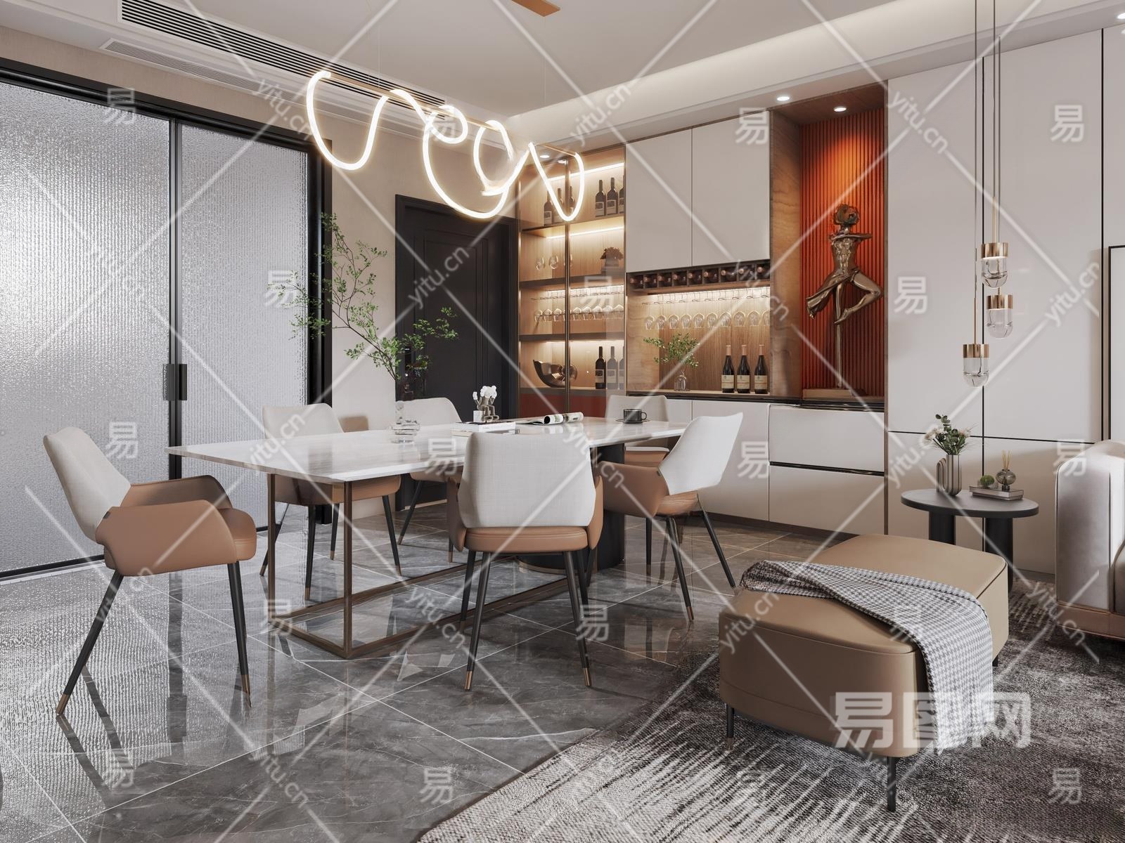 现代家居餐厅3D模型下载