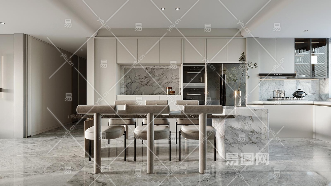 现代家居餐厅3D模型下载