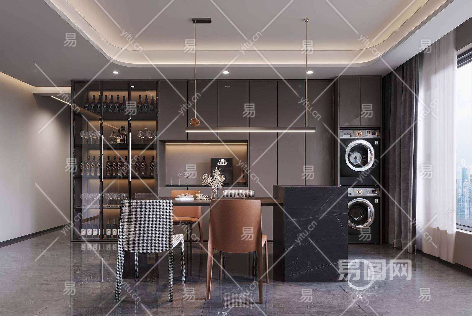 现代家居餐厅3D模型下载