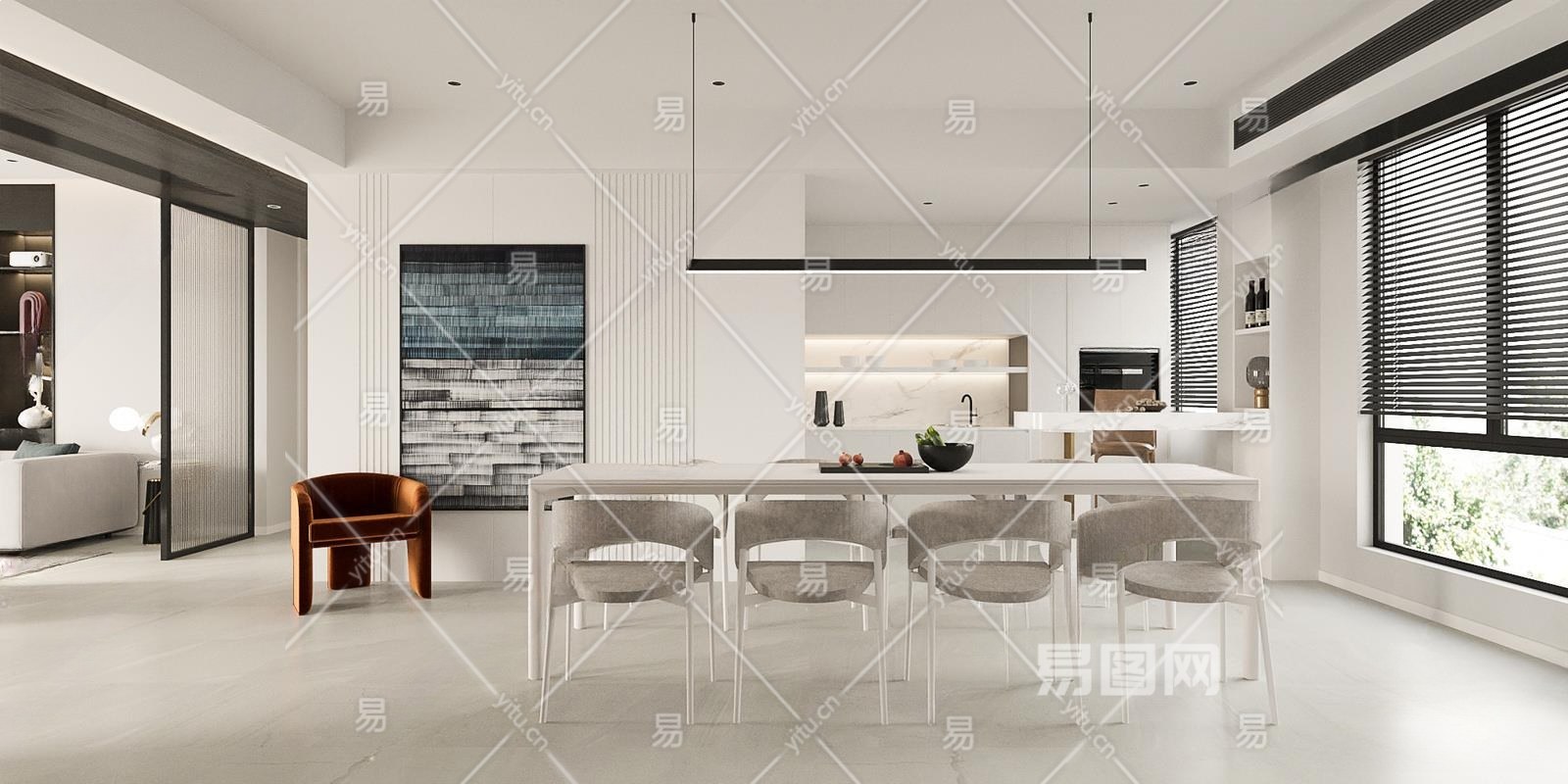 现代家居餐厅3D模型下载