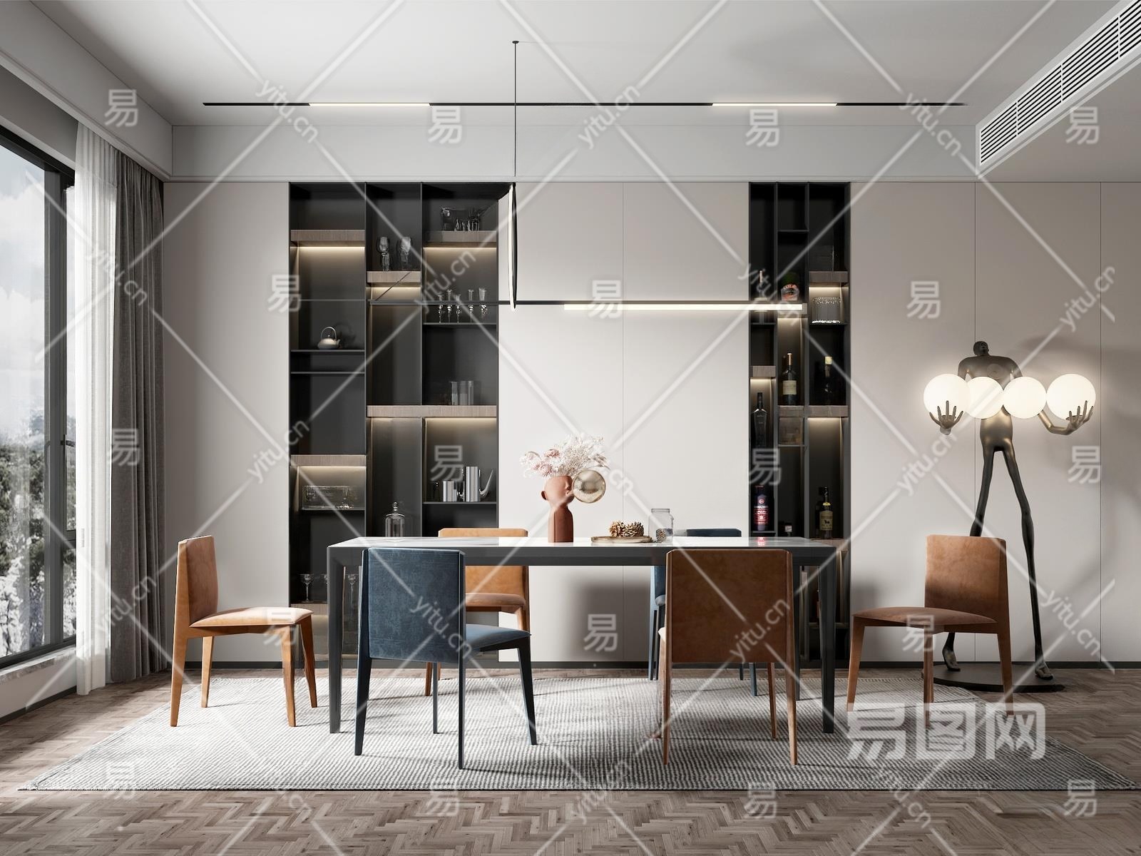 现代家居餐厅3D模型下载