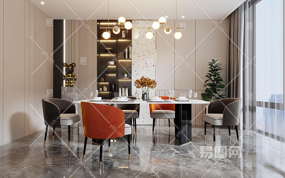 现代餐厅3D模型下载
