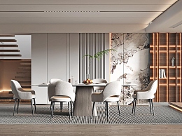 现代别墅餐厅3D模型下载