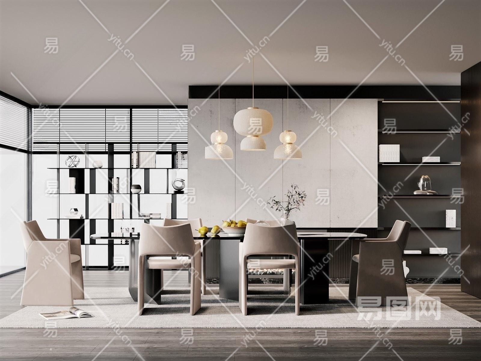 现代餐厅3D模型下载
