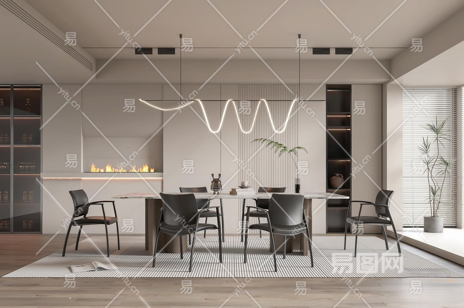 现代家居餐厅3D模型下载