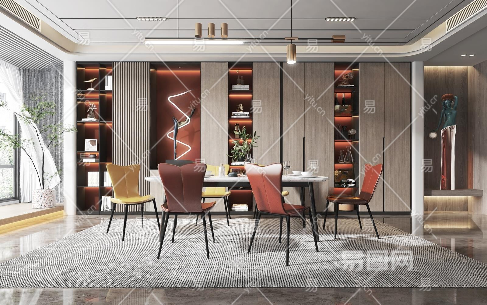 现代家居餐厅3D模型下载