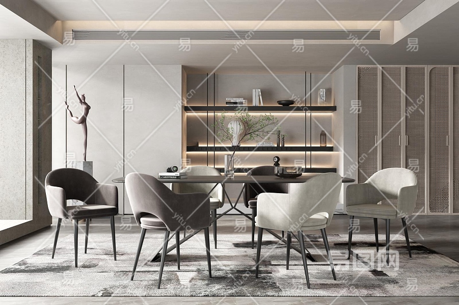 现代家居餐厅3D模型下载