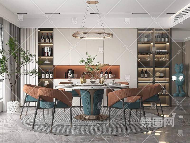 现代家居餐厅3D模型下载
