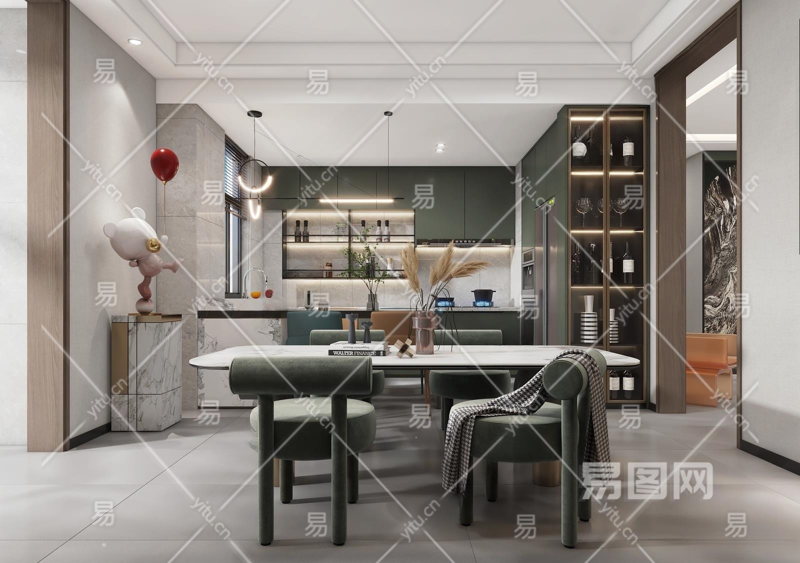 现代家居餐厅3D模型下载