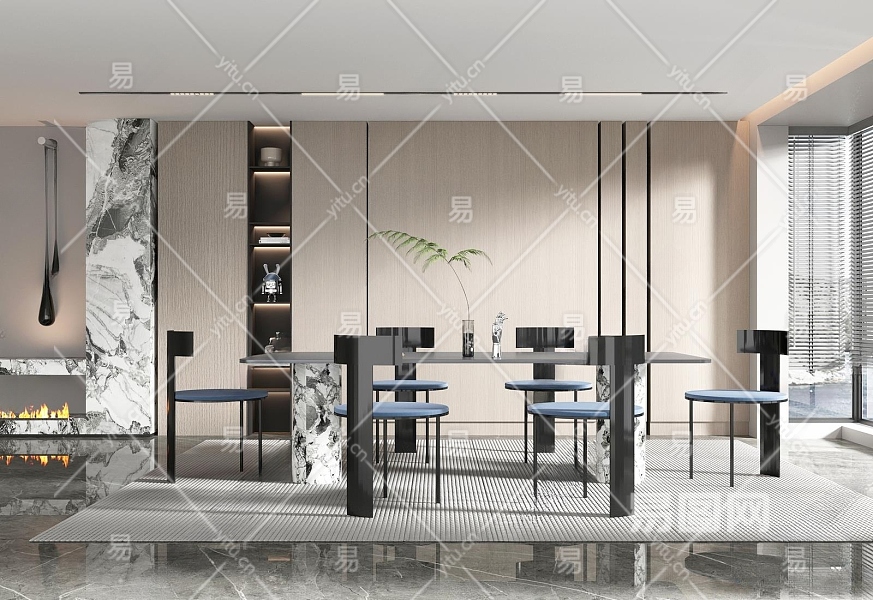 现代餐厅3D模型下载
