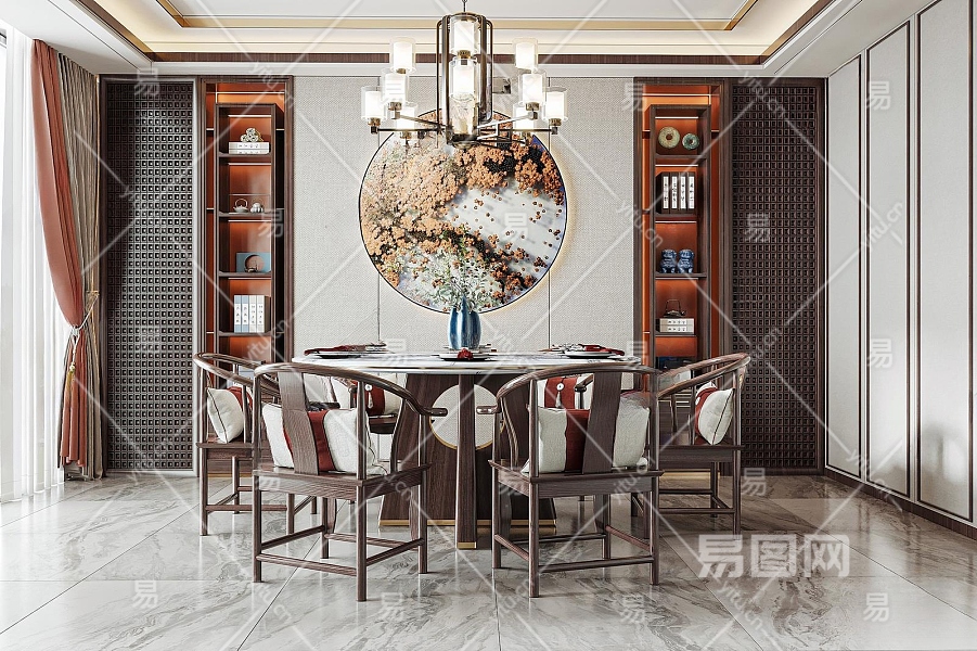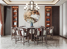 新中式家居餐厅3D模型下载