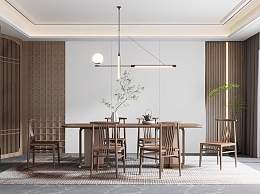 新中式家居餐厅3D模型下载