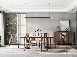 新中式家居餐厅3D模型下载
